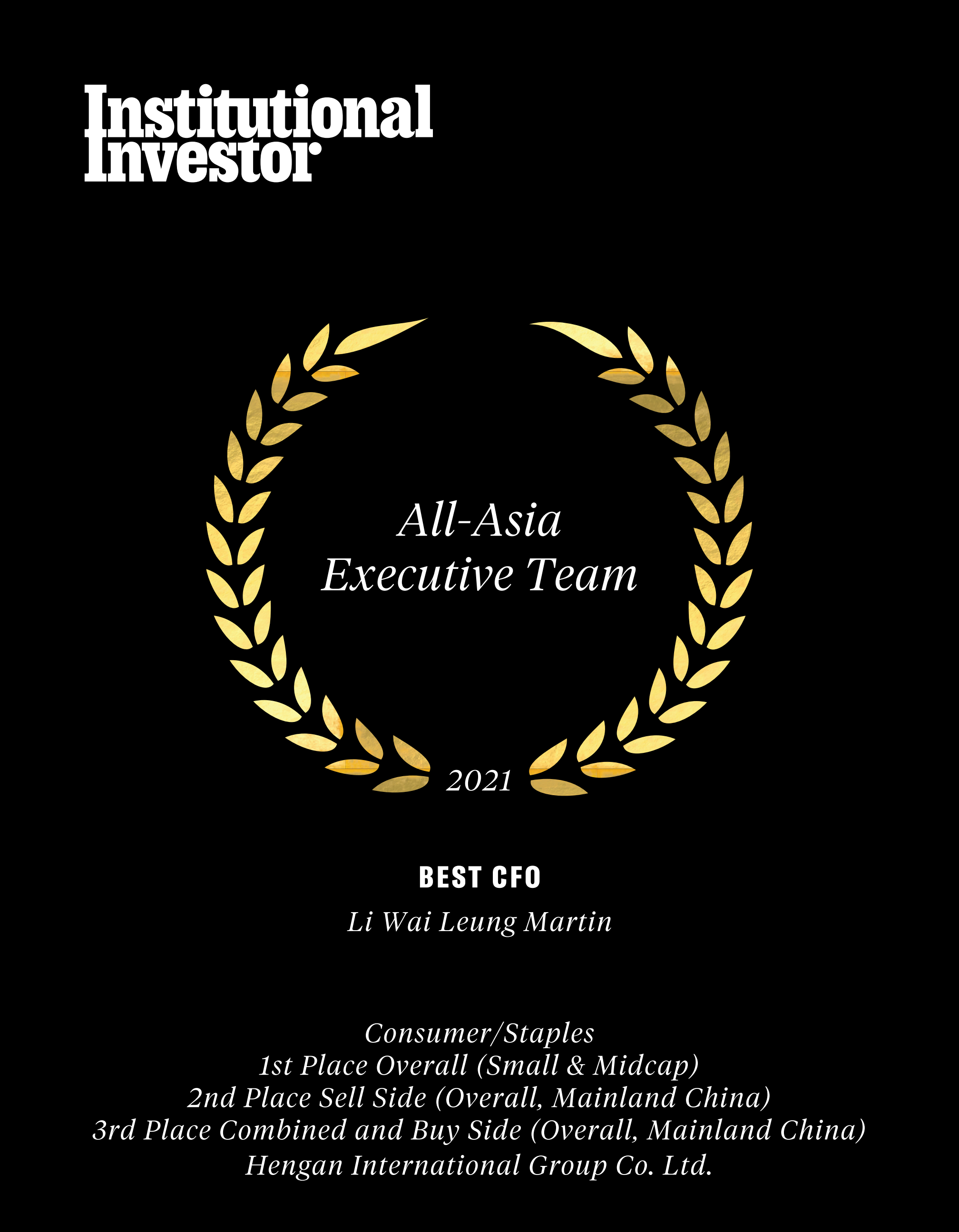 近日,国际权威财经杂志《机构投资者》(Institutional Investor)公布了“2021年度亚洲区公司最佳管理团队”(2021All-AsiaExecutiveTeam)评选结果,CA88国际集团蝉联“受尊崇企业”名衔及必需性消费品类别组别中的多项殊荣,包括“最佳投资者关系活动”、“最佳环境、社会及企业管治(ESG)”、“最佳行政总裁”许连捷先生、“最佳财务总监”李伟樑先生。