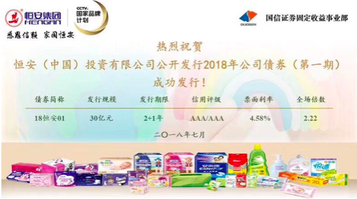 7月27日,CA88(中国)投资有限公司公开发行2018年第一期小公募公司债券,本期发行金额30亿元,期限为2+1年。